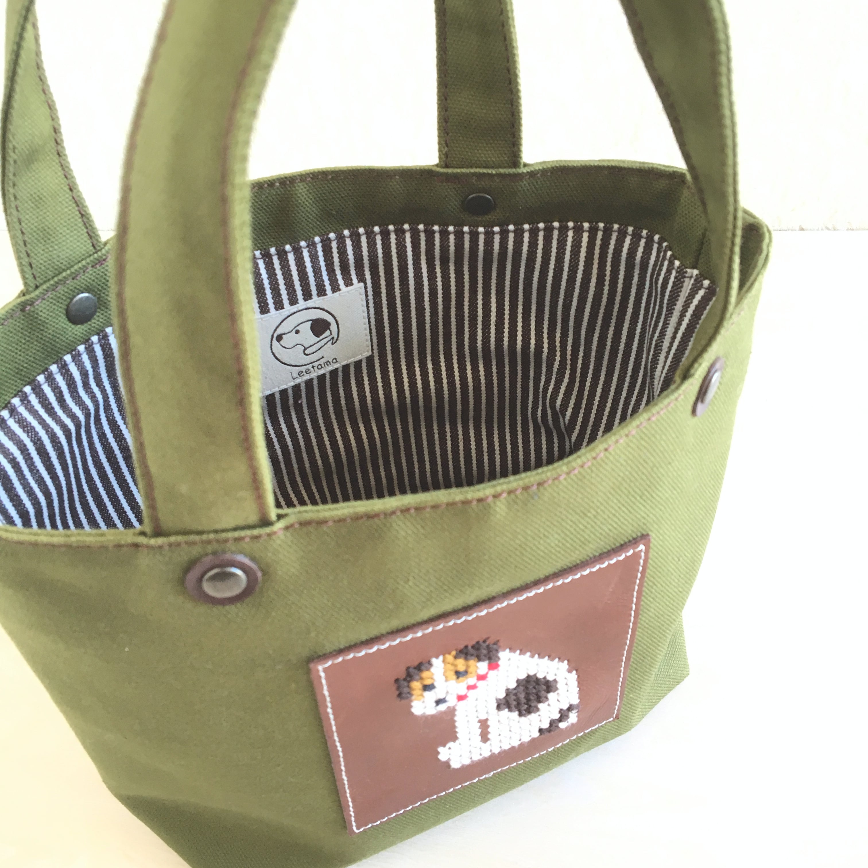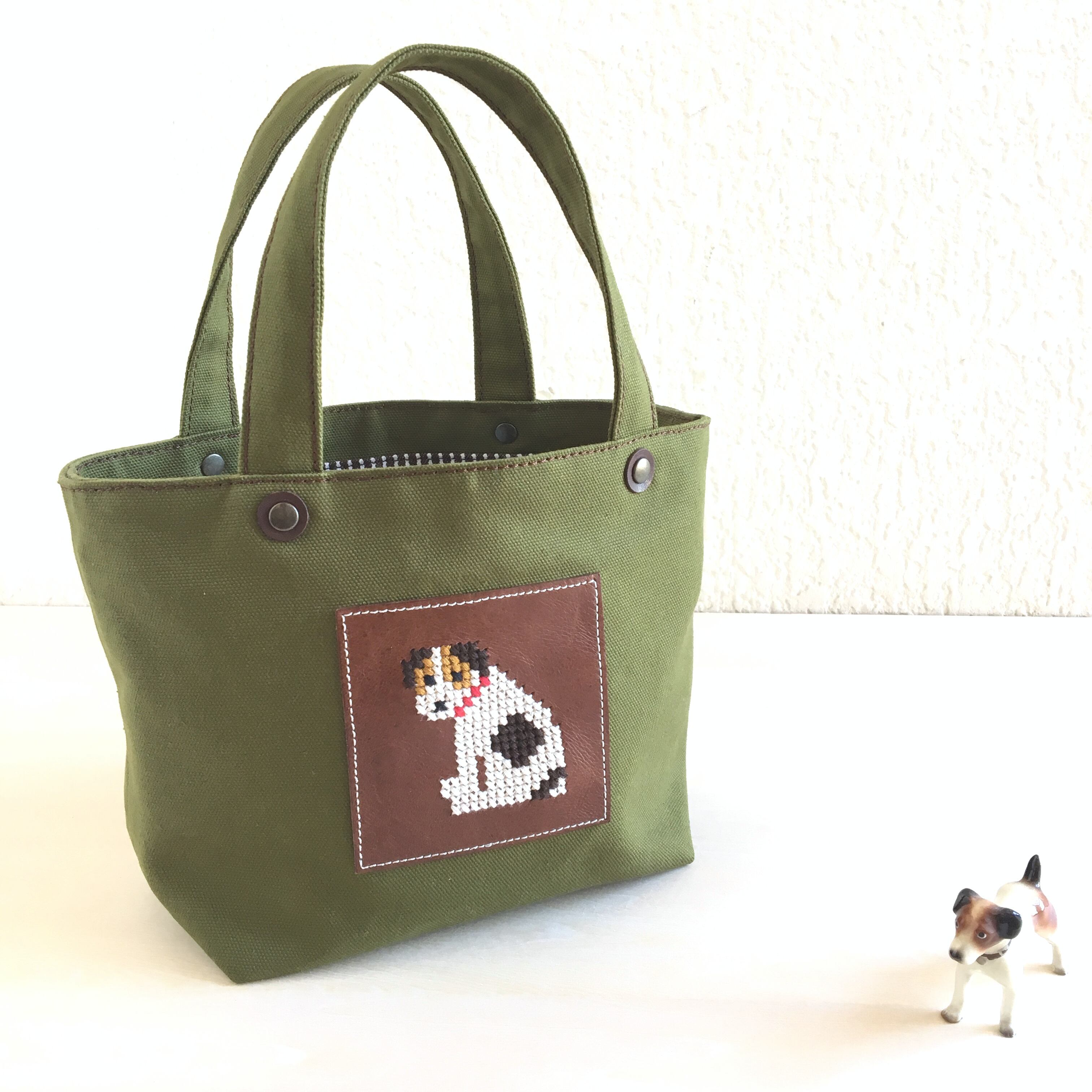 革へのジャックのクロスステッチがワンポイントのminiトートです。